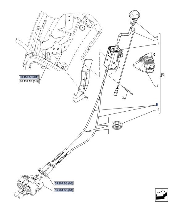 CNH Bowdenzug zu Zwischenachssteuergerät